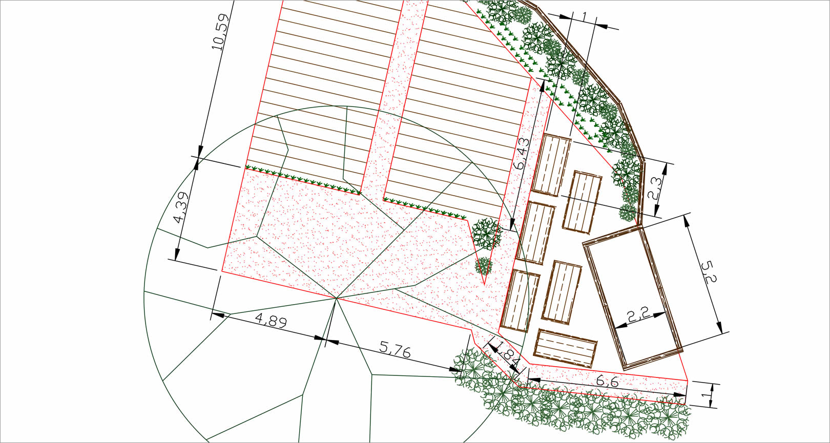 El siguiente paso será el “replanteo”. Este es el momento intermedio entre el plano y la instalación definitiva. Nos permite hacer los ajustes necesarios en nuestro proyecto. Se trata de marcar sobre el terreno los elementos que se instalarán posteriormente. Podemos usar estacas, cuerdas, tizas, macetas o piedras. Marcaremos dónde van los surcos y bancales, los arbustos, el riego, mesas, bancos, etc. Es el momento de hacer los cambios necesarios en el proyecto (por ejemplo, podríamos darnos cuenta de que en el lugar donde pensábamos plantar un arbusto hay cemento, o cualquier imprevisto similar).