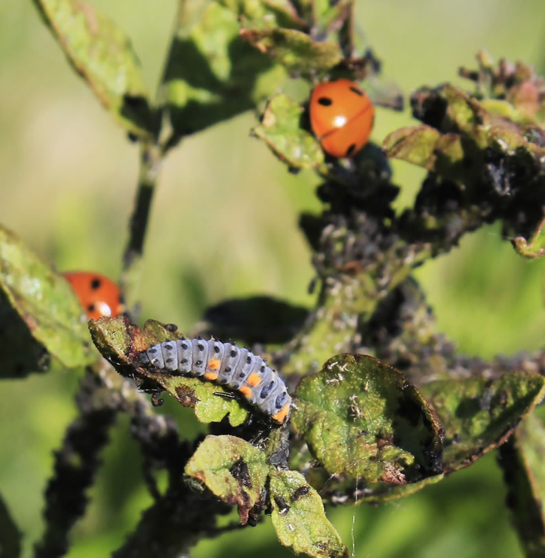 Los ciempiés, las mantis religiosas, los sapos, las mariquitas (y sus larvas) depredan animales perjudiciales para el huerto